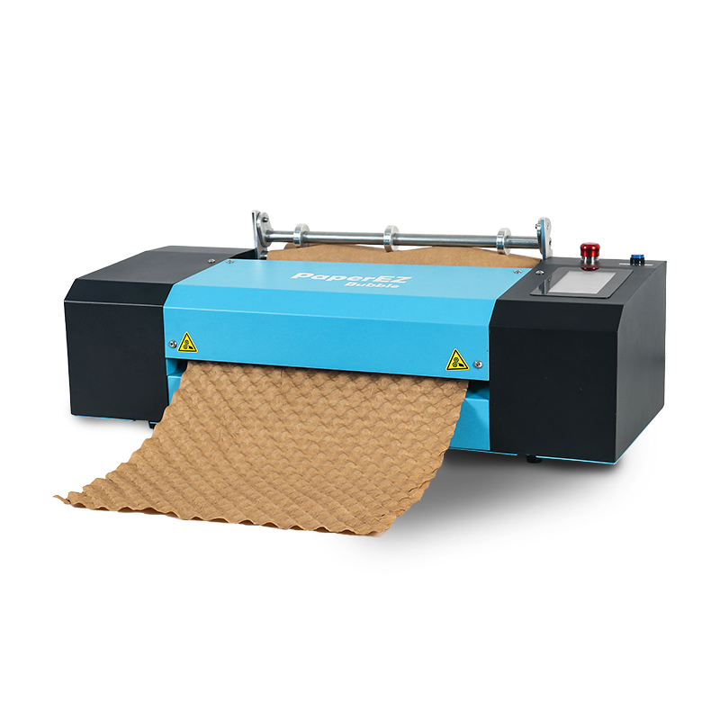 PaperEZ 壓泡紙機(Bubble Machine)PZB-2可自動將牛皮紙卷或風琴紙進過加濕和烘烤擠壓形成3D且富有彈性凸起結(jié)構的壓泡紙,最大支持寬幅升級660mm壓泡紙,可自動出紙、自動裁剪、自動記米,也可配合腳踏進行操作控制,壓泡紙在物流運輸中起到有效緩沖、避免包裹互相碰撞的作用。