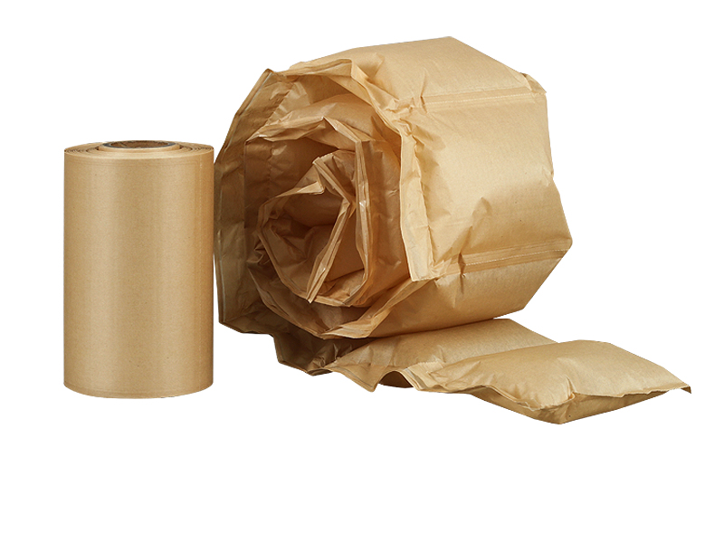 BioAir 紙葫蘆膜(紙Wrapper)(Void fill Paper bubble)是將全生物降解薄膜與牛皮紙兩種環(huán)保材料用獨特工藝緊密貼合制成,是一種新型完全可降解材料,可通過歐盟ok compost降解認證,堆肥條件下6個月內(nèi)90%以上降解轉(zhuǎn)換成水和二氧化碳。相比全生物降解葫蘆膜,紙葫蘆膜除了美觀外還具有優(yōu)越的耐穿刺性能;使用時經(jīng)過經(jīng)典型氣墊機CA3充氣熱封后,用于包裝容器內(nèi)產(chǎn)品的裹包、鋪墊及空隙填充,起到緩沖減震,產(chǎn)品固定作用,確保產(chǎn)品運輸安全。可定制尺寸和顏色(黑色、粉色、本色)等。